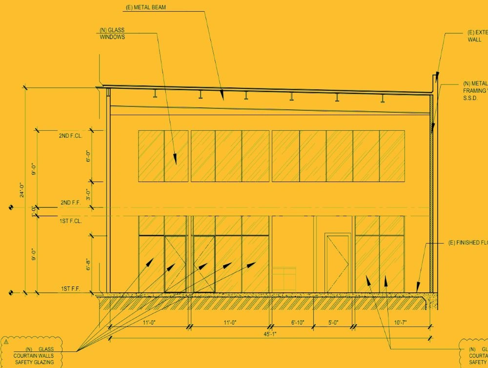 Our team developed complete floor plans, restroom layouts, and storefront elevations. The design included ADA-compliant unisex bathrooms, door signage, push-plate hardware, and showroom enhancements with glass storefronts and branded finishes.